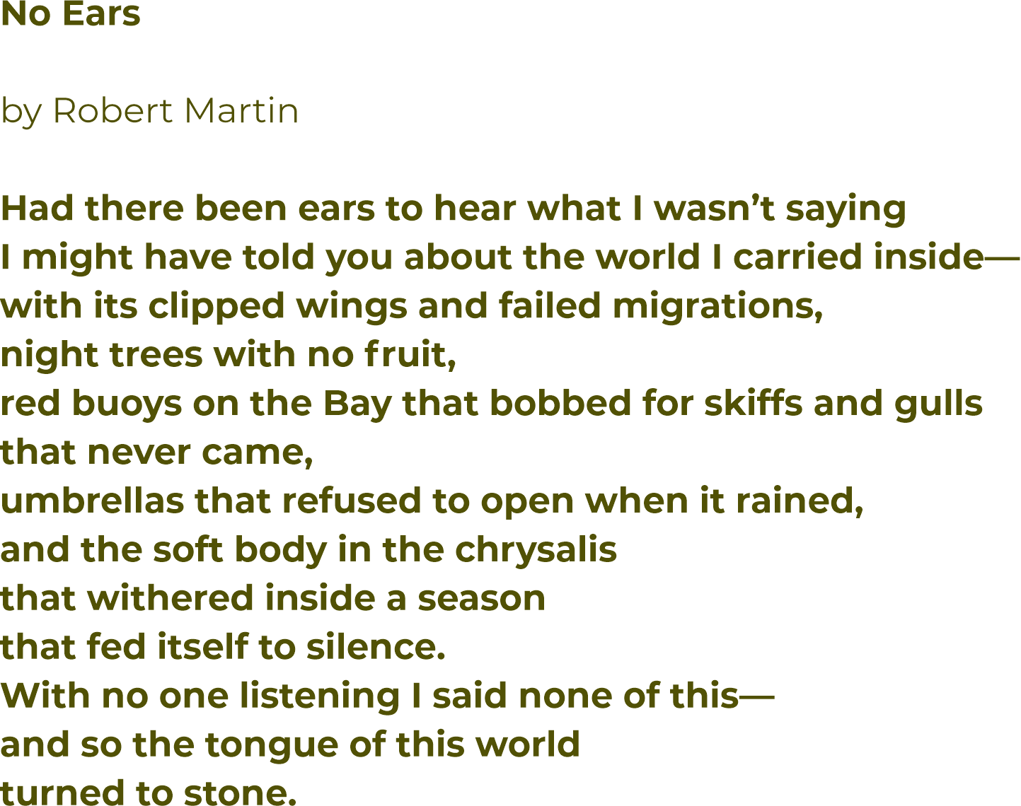 We might work with poetry, mythology, or improv. We might unearth and tend to grief. We might engage nature, create a play list, plan a field trip.
